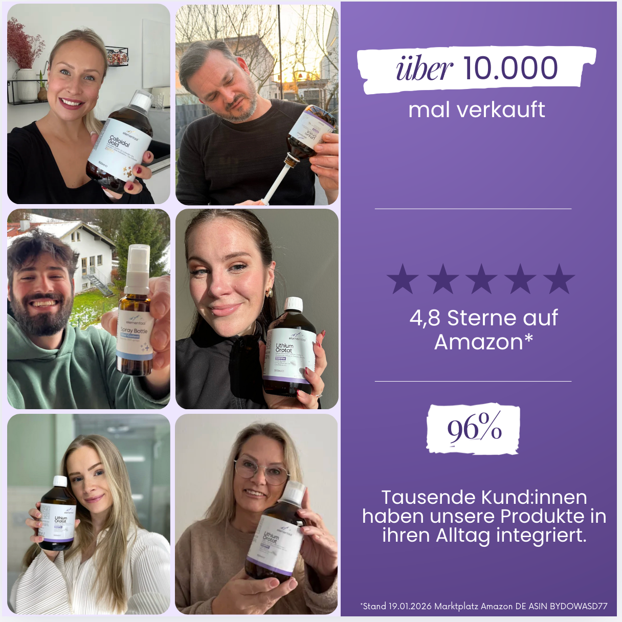 Unser Lithium Orotat wird mit unserem innovativen Verfahren hergestellt, für höchste Reinheit und optimale Partikelgröße. Mit 500 PPM Konzentration, also 0,5mg elementares Lithium pro 1 ml, bietet es maximale Wirksamkeit. Verpackt in lichtgeschützter Braunglasflasche für optimale Lagerung. Entdecken Sie die vielfältigen Merkmale dieses einzigartigen Präparats und erfahren Sie seine besonderen Eigenschaften.